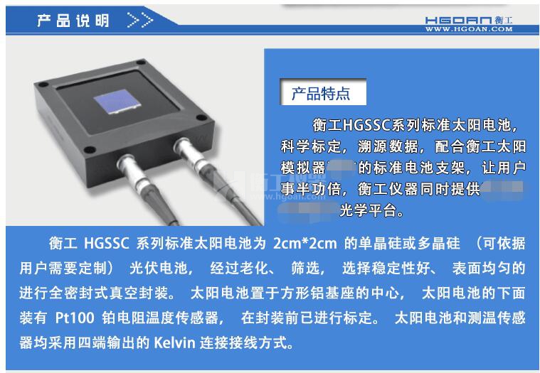 衡工HGSSC系列標(biāo)準(zhǔn)太陽電池