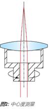 透鏡的中心也稱為向心性或離心性,是根據(jù)光束偏差δ(方程式1)而指定的。一旦給定了光束偏差,則可以通過一種簡單的關(guān)系來計算楔角W(方程式2)。 透鏡的離心量是機械軸與光學軸物理偏離的距離。透鏡的機械軸僅為透鏡的幾何軸,是由其外部的柱面來定義的。 透鏡的光學軸是由光學表面來定義的,它是連接各表面曲率中心的線。要進行向心性測試,請將透鏡置于茶杯中,對其施壓。 對透鏡施加的壓力會自動聚集在茶杯中心第一個表面的曲率中心,并且該中心還會與 旋轉(zhuǎn)軸對齊(圖2)。沿著此旋轉(zhuǎn)軸射入的平行光將會穿過透鏡,到達后焦平面的焦點處。當透鏡隨著茶杯的旋轉(zhuǎn)而旋轉(zhuǎn)時,透鏡中的任何離心性都會使聚焦光束分散,并在后焦平面形成一個半徑為 Δ 的圓軌跡(圖1)。