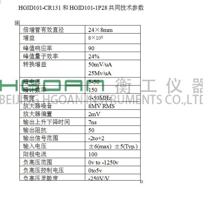光電倍增管(如光電倍增管室內(nèi)置CR131型光電倍增管,則型號為HGID101-CR131)