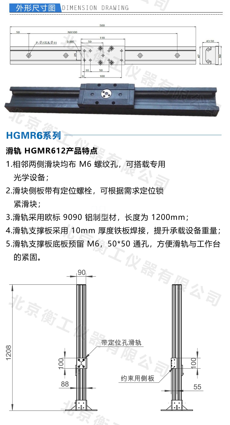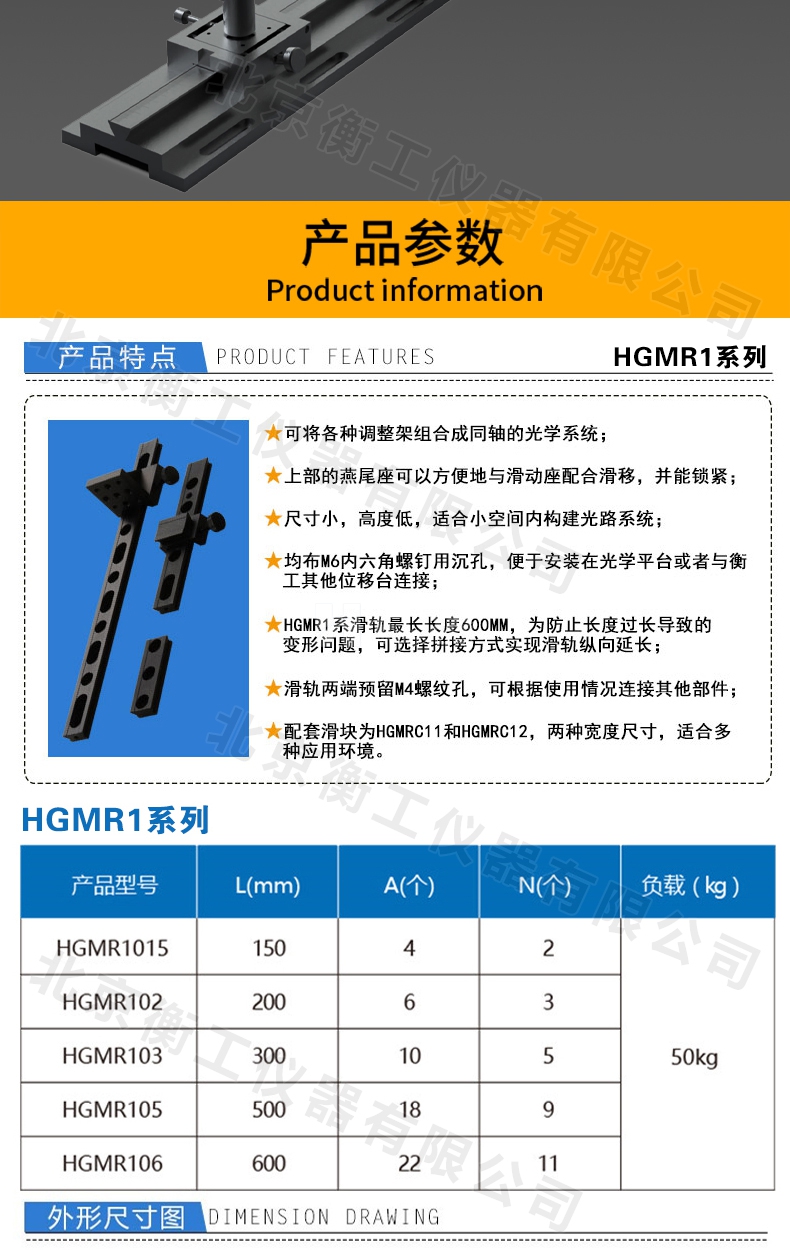衡工HGMR系列光學(xué)滑軌 實(shí)驗(yàn)直線運(yùn)動(dòng)導(dǎo)軌 滑動(dòng)座載物滑軌載物臺(tái)