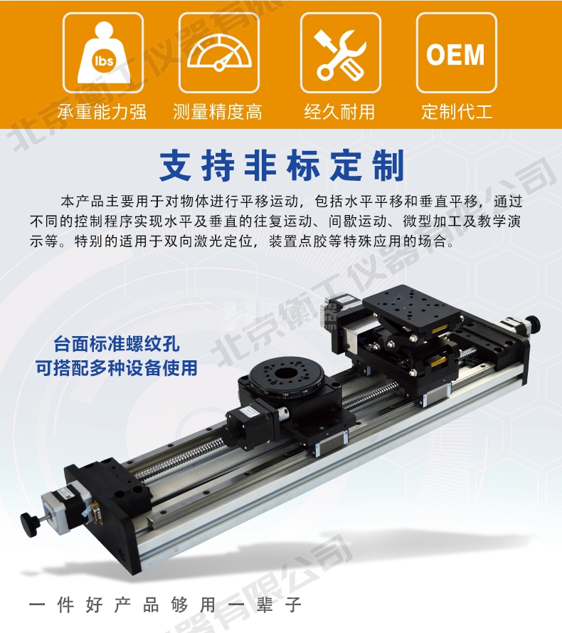 本產(chǎn)品主要用于對物體進行平移運動,包括水平平移和垂直平移,通過不同的控制程序?qū)崿F(xiàn)水平及垂直的往復運動、間歇運動、微型加工及教學演示等。特別的適用于雙向激光定位,裝置點膠等特殊應用的場合。